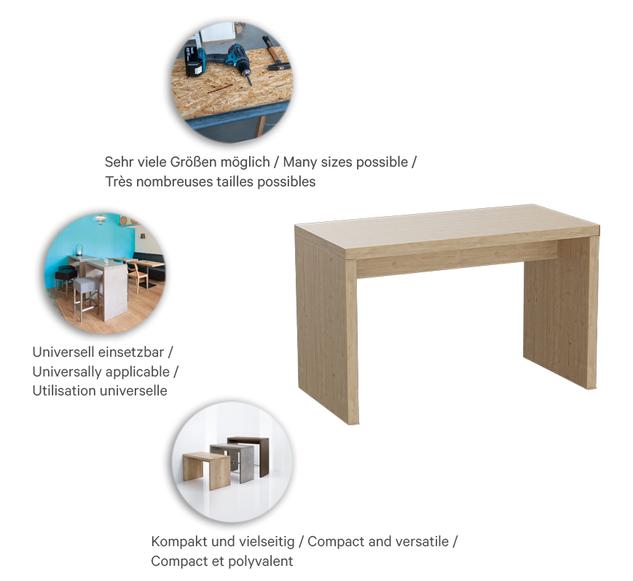 Le modèle Formline apporte de la structure à la pièce grâce à son design compact et rectiligne. Cette table est disponible en trois hauteurs, dans de nombreux formats spéciaux et avec quatre décors élégants. La table mi-haute et la table haute sont pourvues d’un repose-pieds en acier inox. Cette table à panneaux se distingue également par des surfaces résistantes et une grande stabilité.Numéro d'article