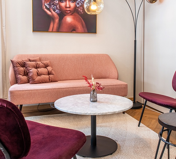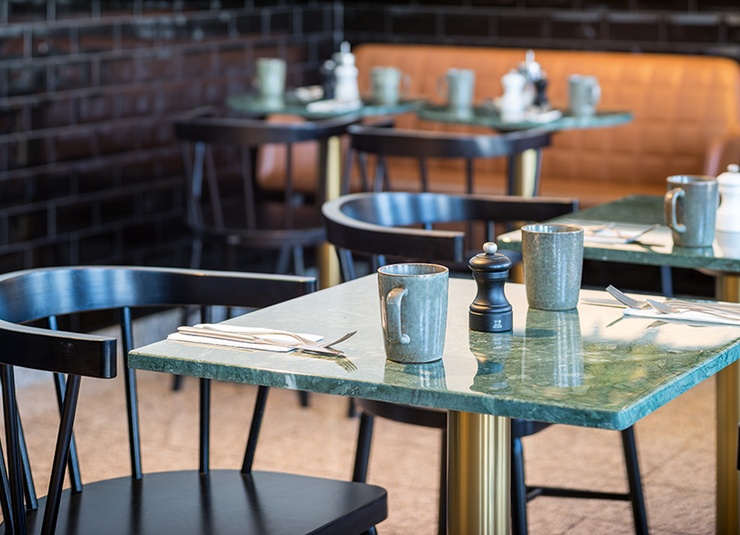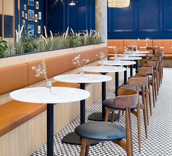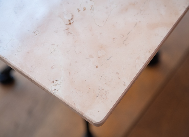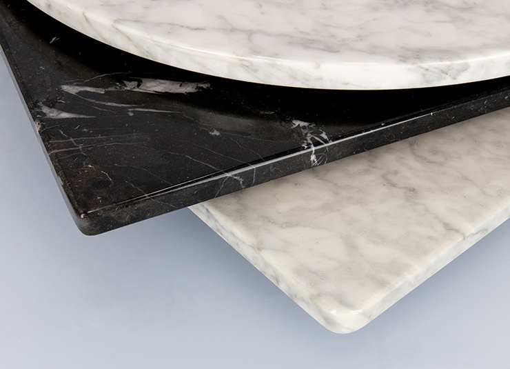 On le retrouve dans les bistros et dans de nombreux cafés de style français : le plateau en marbre Glare dans le style Belle Époque. La pierre naturelle disponible dans les décors bainco carrara et nero marquina s’intègre à la perfection à de nombreux concepts d'ameublement. Le revêtement en polyester transparent de la surface en marbre la protège contre la saleté et les décolorations. Ce plateau de table est disponible en forme ronde et carrée et en deux dimensions différentes. Vers les produits!