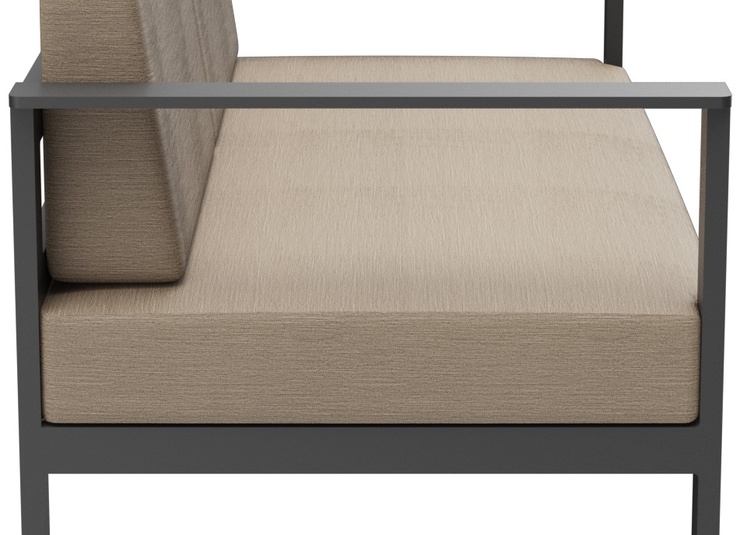 Le salon de jardin Sorelia se compose d’un fauteuil, d’un canapé deux places et d’une table basse avec un plateau en verre. La structure est en aluminium thermolaqué de couleur anthracite. Les coussins d’assise et de dossier sont dotés de housses amovibles et lavables, en tissu SUNBRELLA ou LISO. Ils doivent être protégés de l’humidité et rangés au sec lorsqu’ils ne sont pas utilisés. Conservez les coussins à l’intérieur et assurez-vous qu’ils soient complètement secs avant de les stocker ou de les couvrir. Notre tissu d’extérieur Liso, en acrylique teint dans la masse, est résistant à la lumière, durable (20 000 cycles d’abrasion) et résistant aux intempéries. Il est déperlant (colonne d’eau de 1 000 mm) et facile d’entretien grâce à son traitement anti-taches.