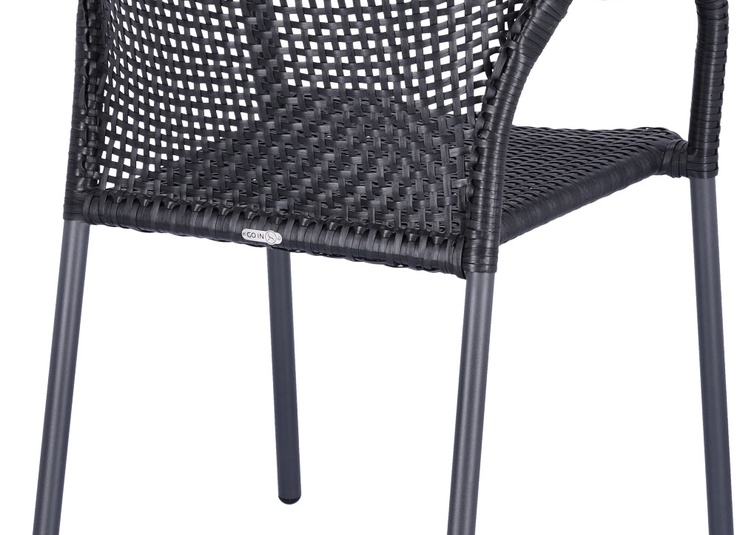 La chaise à accoudoirs empilable Nabal est idéal pour les glaciers et les terrasses d'hôtels. La structure est en aluminium peint par poudrage anthracite ; l'assise et le dossier sont recouverts de poly-rotin noir ou naturel conférant au tissage rugueux un toucher naturel. Un coussin est disponible en option.Numéro d'article