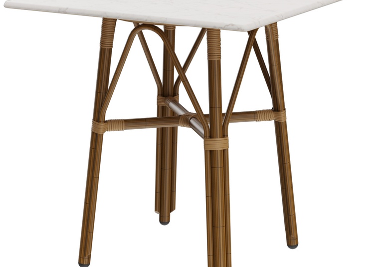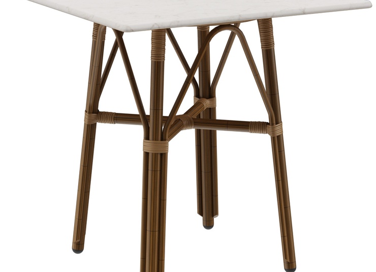 Avec sa forme typique de table de bistrot et son piètement en rotin, Marysol est le complément idéal des modèles de chaises au look brasserie. Le piètement en aluminium thermolaqué disponible en version trois ou quatre pieds peut être combiné avec différents plateaux de table - tantôt classiques, tantôt modernes. Le piètement à trois pieds est configurable avec des plateaux ronds de 68cm et 70cm. Marysol peut être utilisé à l'intérieur comme à l'extérieur.